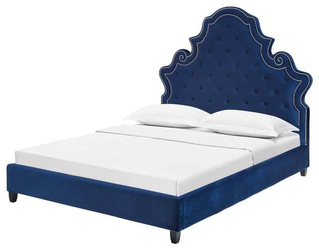 Home life charcoal blue upholstered platform bed frame & slats modern home wm king size platform bed frame with wooden headboard white modern bedroom.