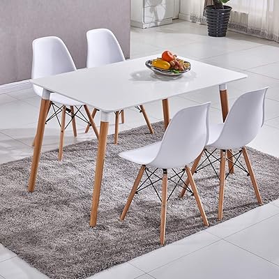 Retro White Dining Table And Chairs - Stream Dining Table And Chair Set 4 Eiffel Retro Style Rectangular Table Chair With Wood Leg For Dining Room Modern Kitchen Furniture White Rectangular Table 4 Chair Buy Online In Saint Vincent And - Country farmhouse antique white kitchen dining table.