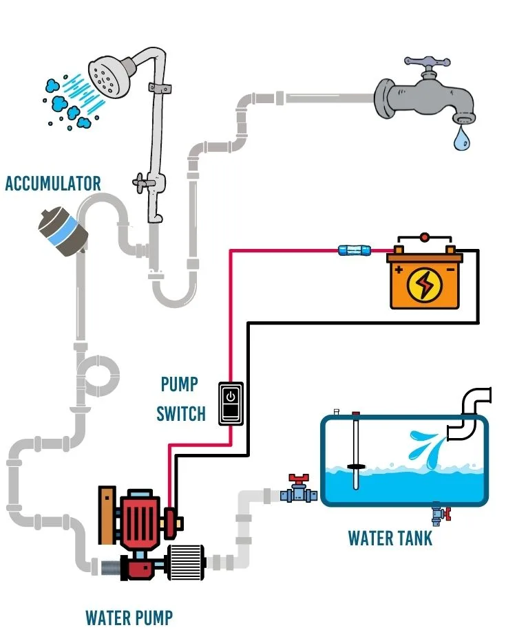 Normally, a 12v battery supplies electricity 24 volt rv water pumps have a much greater rv water pressure.